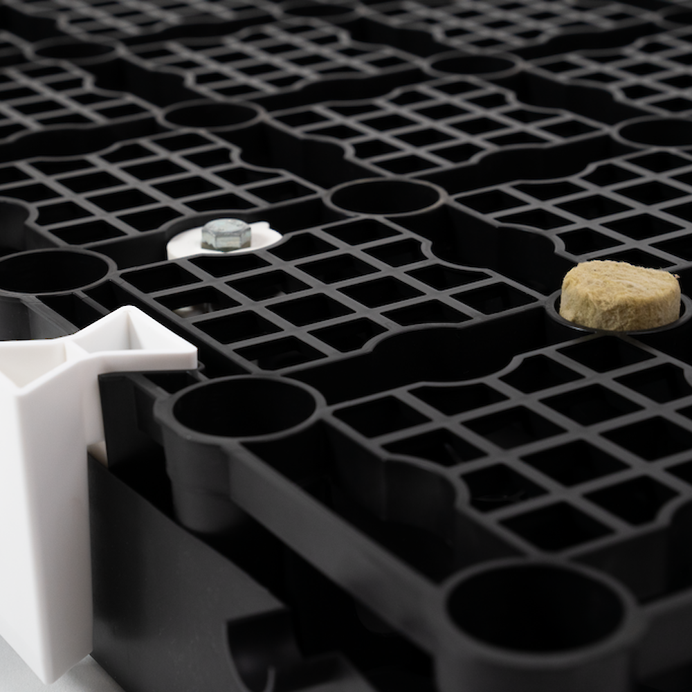 De sterkte van een plaat van Permavoid units wordt niet alleen bepaald door de sterkte van de units, maar ook door de sterkte van de verbindingen tussen de units. De PermaTies van polypropeen zijn licht conisch van vorm, zodat ze de afzonderlijke units strak tegen elkaar trekken en een stevige plaat vormen.