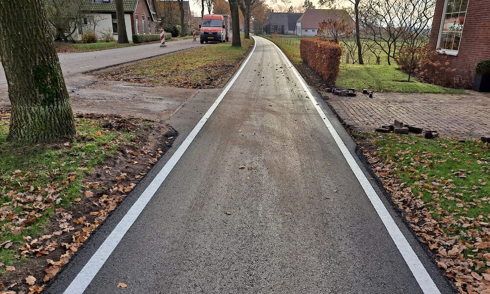 Voor een proef van de provincie Groningen heeft de Roo Wegenbouw het fietspad langs de N386 en de N963 in Kropswolde aangepakt