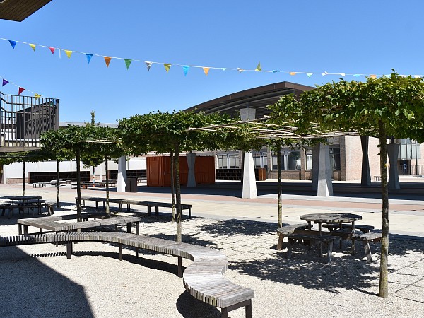 Naast de beschermende werking van de drukverdelende laag is het ook een holle ruimte die ervoor zorgt dat de waterdoorlatendheid van de half verharding optimaal is en dat het water rustig de bodem in kan infiltreren zonder dat er water op het plein blijft staan.