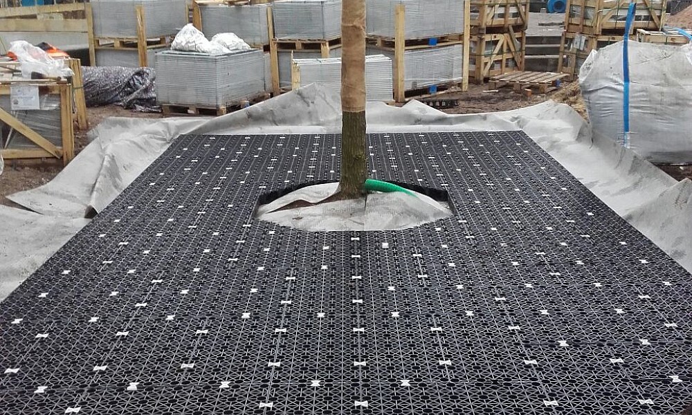 De opbouw van de groene basis is het Permavoid Capillair Irrigatie Systeem 85s met daarop een laag van 80cm bomengrond afgewerkt met een laag van gewapend gazon. Dit systeem zorgt voor een schijngrondwaterstand op het dak van de fietsenkelder die door regenwater gevoed wordt wat door de verharding en de bomenvakken heen loopt. Zodra de grond op veldcapaciteit is wordt het overtollige water in het systeem vastgehouden. Zo ontstaat er een extra buffer voor de bomen als er een neerslagtekort is. Het resultaat van het nieuwe ontwerp en de aanplant van de bomen is overweldigend. De bomen hebben zich geweldig ontwikkeld en de mensen maken er massaal gebruik van.