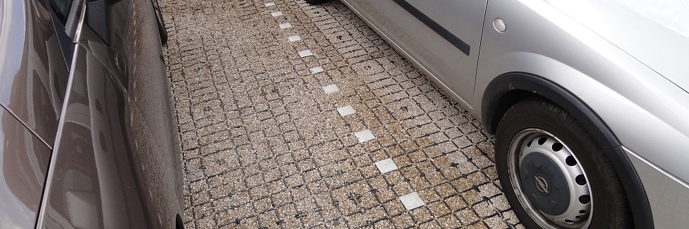Bij het verwerken van Slimblock heeft het de voorkeur om de producten zo dicht mogelijk op de fundering te stellen. Een vlijlaag van 30 tot 50 mm drainerend zand of split is ideaal. In combinatie met aarde en gras dient men ervoor te zorgen dat de leeflaag met gras zich net onder de rand van de tegel bevindt. Bij toepassingen met grind adviseren wij altijd een scheidingsdoek. Het betreft hier een open verharding dus zorg er altijd voor, dat het water aan de onderzijde van het systeem wegkan.